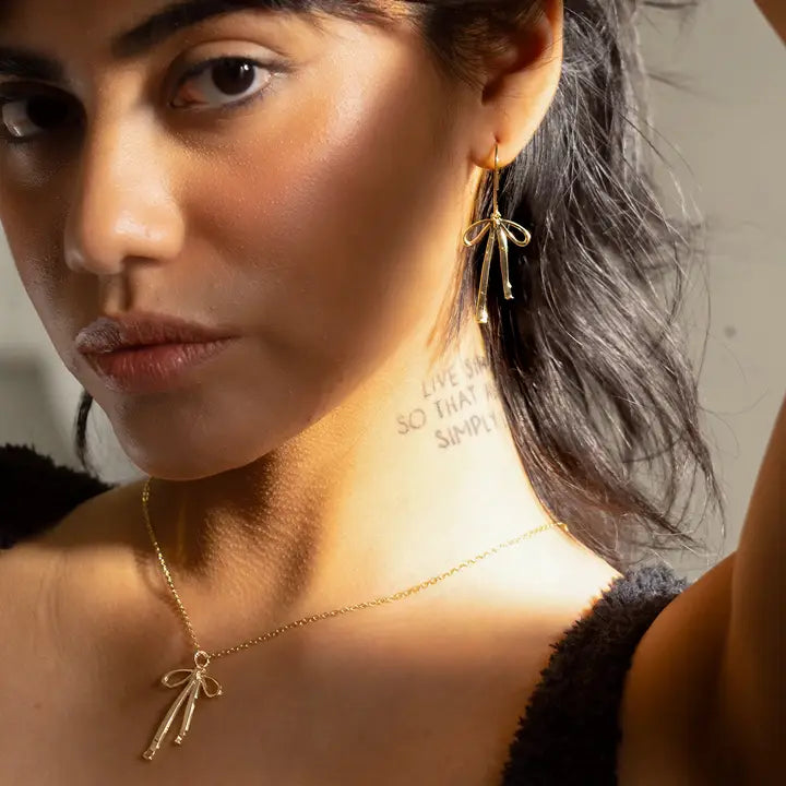 Set Includes: Bad to the Bow Necklace and Bad to the Bow Earrings in gold or silver