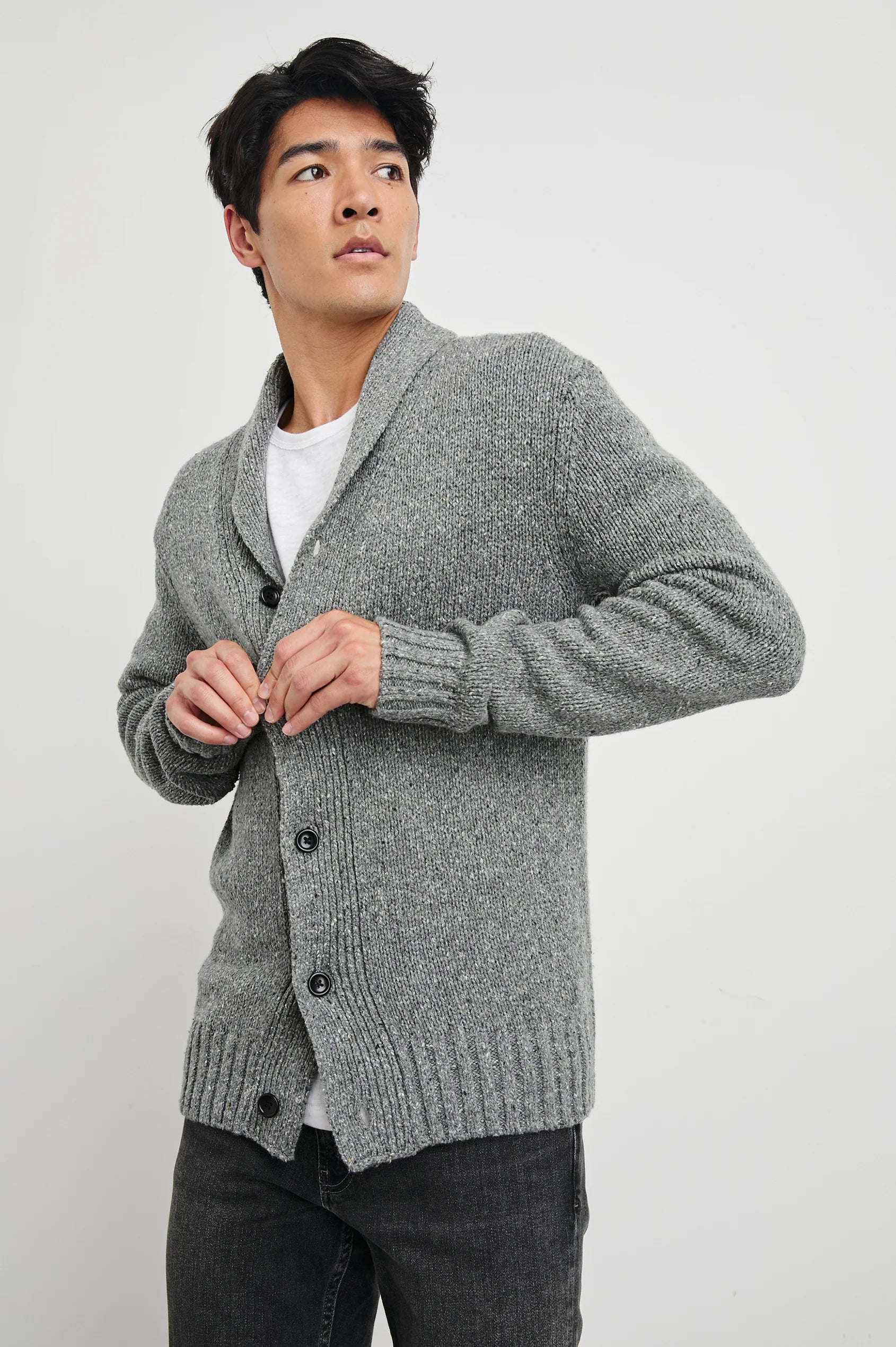 Pair with a t-shirt for a casual look or a buttondown to dress it up. Made from a lightweight cotton blend yarn, this oat brown button-down cardigan features a sophisticated shawl-collar that's knit from soft, cozy and breathable fibers.