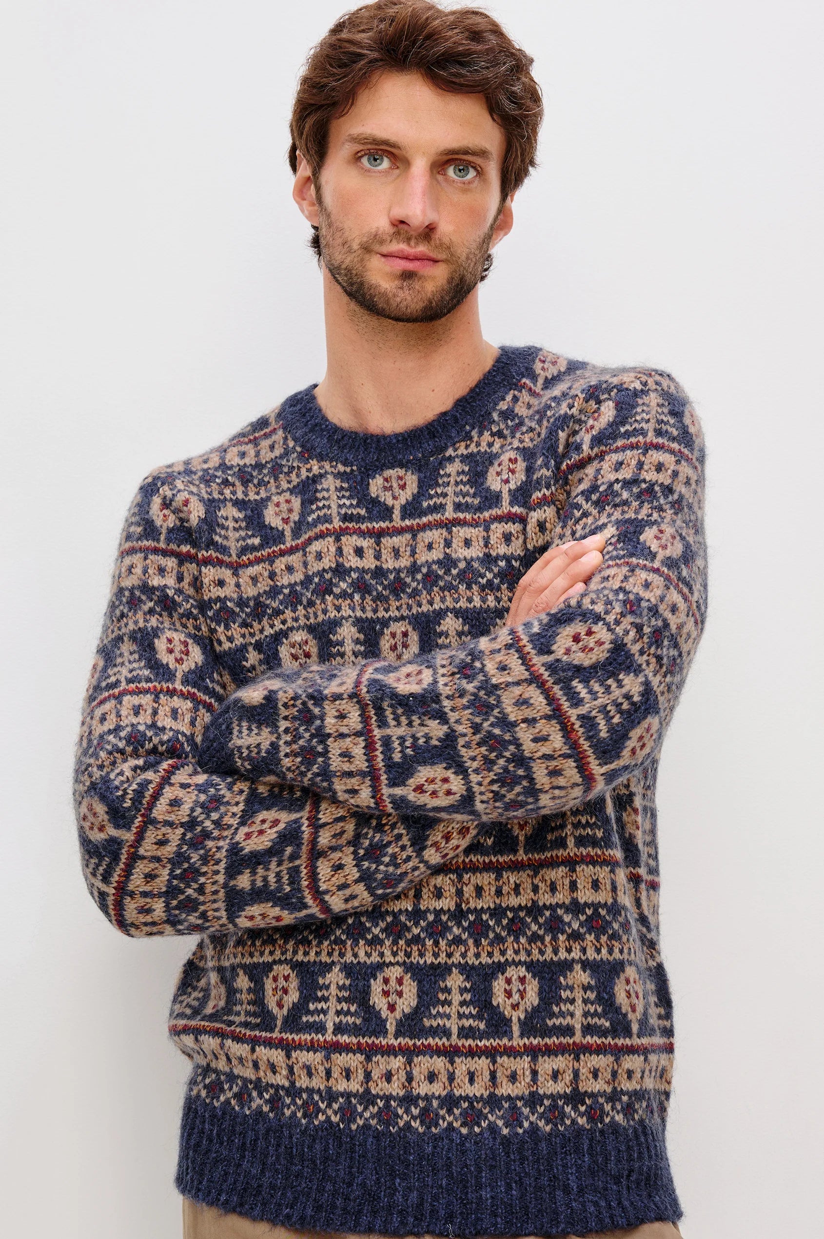 Time-honored tradition, perfected for now. The Lars features Fair Isle motifs in soft, fuzzy merino wool blend, cut in a relaxed fit with long sleeves and ribbed trim